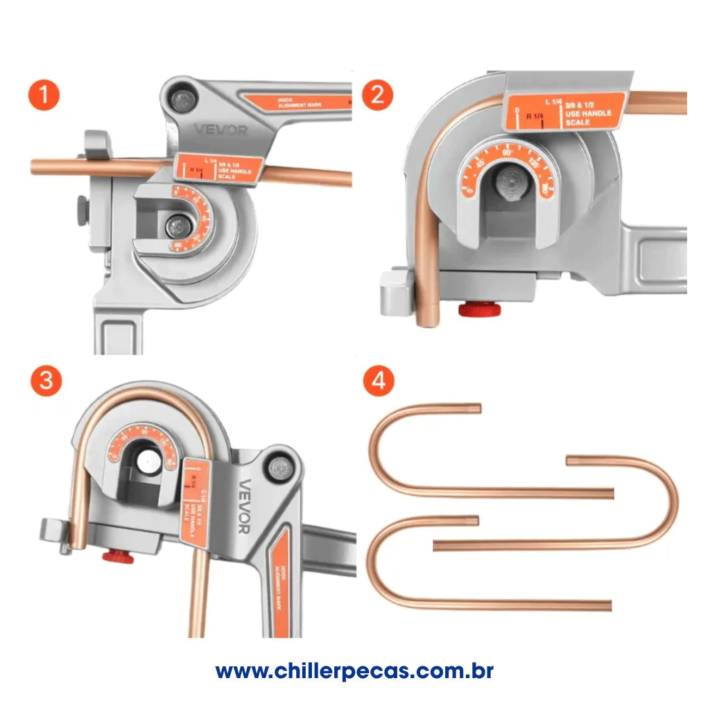 - Acabamento Profissional: Assegura que todas as curvas da tubulação de cobre tenham um raio consistente e um visual limpo e técnico, elevando a qualidade percebida do serviço.