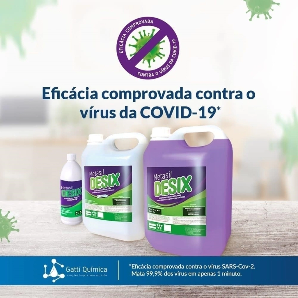 Desix é um Desinfetante Líquido que mata 99,99% dos germes, bactérias e fungos, além de ter sido testado e comprovado pela Universidade de Campinas (UNICAMP) como um agente que elimina o vírus do covid-19 ao contato, sem agredir a saúde da sua família.