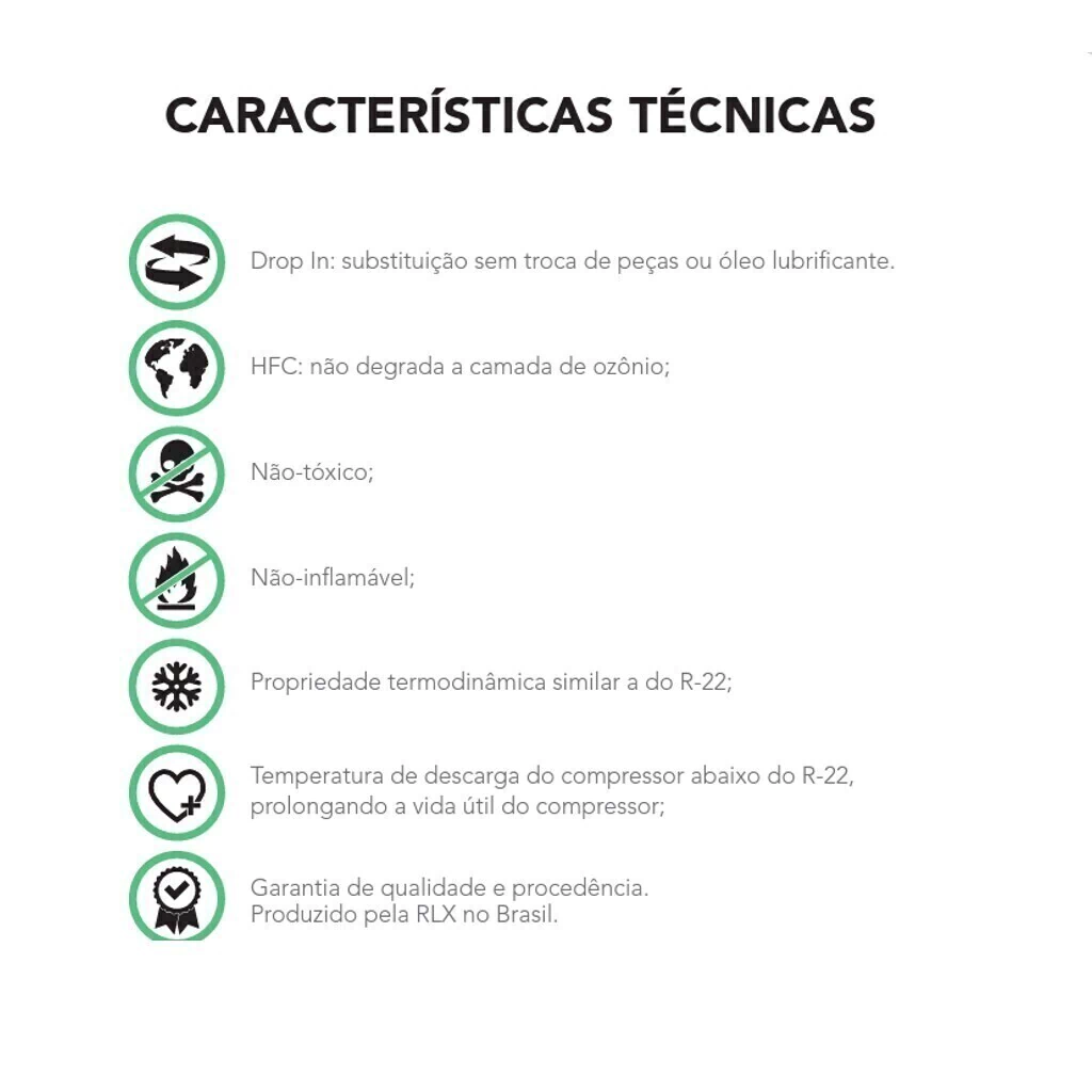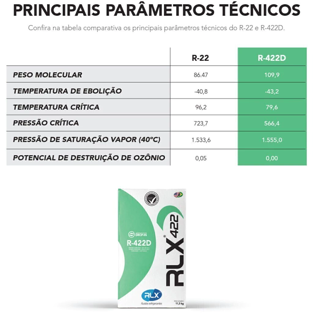 RLX 422® é um FLuido refrigerante, ecologicamente correto, desenvolvido para substituir o R-22 em condicionadores de ar de uso comercial e residencial, bombas de calor, refrigeração industrial, câmaras frias, transporte frigoríco, entre outras aplicações.