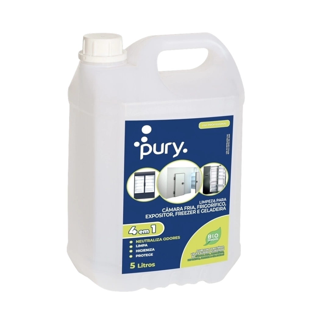 Bactericida e Higienizador Pury Limpeza Profissional de Geladeiras Freezers Frigoríficos Câmaras Frias Expositores Galão 5 Litros - Air Shield
