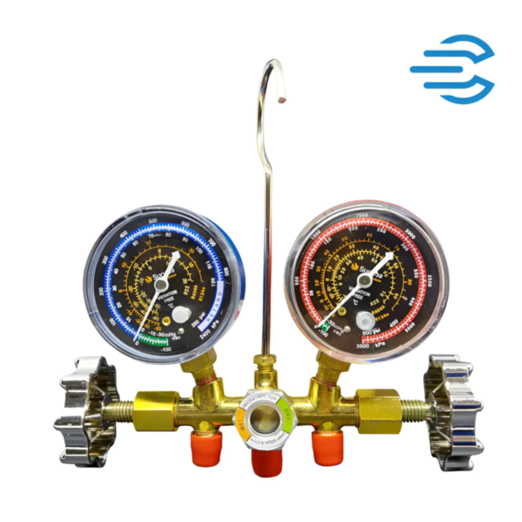 O manifold é compatível com os principais gases refrigerantes: R22, R134a e R404A, amplamente usados em sistemas residenciais, comerciais e industriais de ar-condicionado e refrigeração.