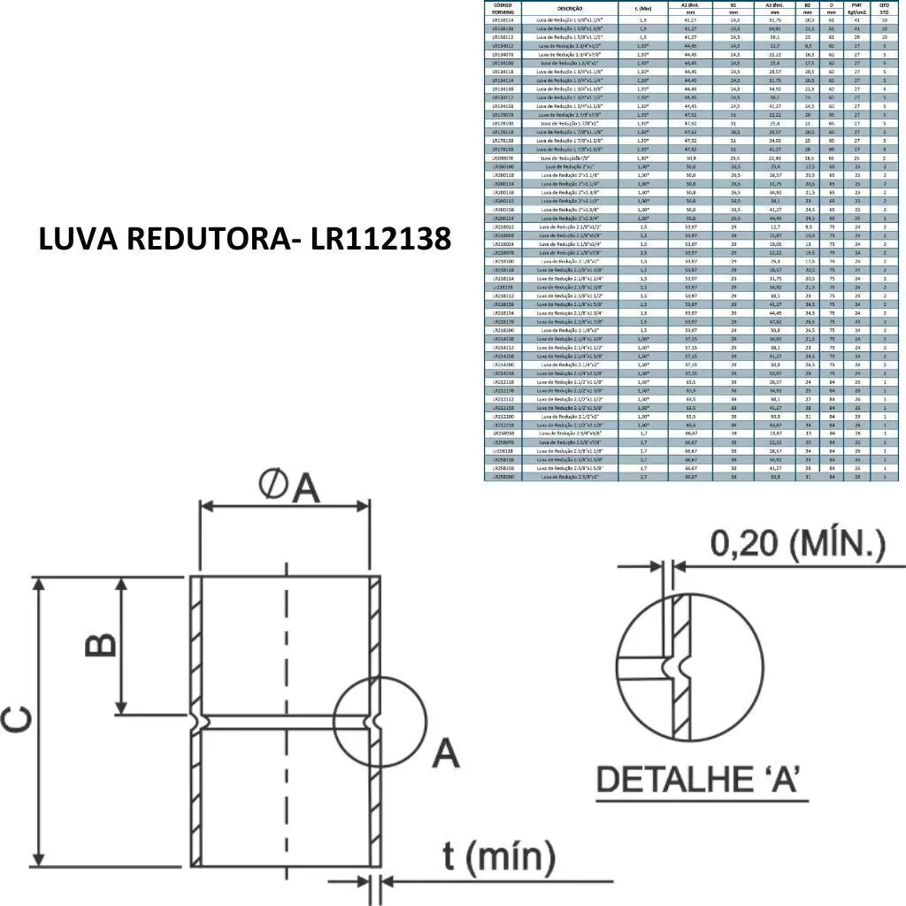 Luva de Cobre Redutora 1.1/2" X 1.3/8"