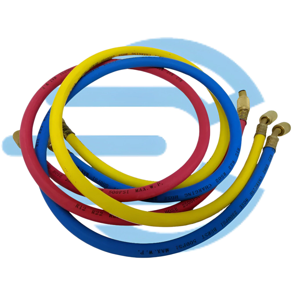 - Jogo mangueiras universal com 3 unidades, 1/4" (serviço) e 5/16" (alta e baixa) SAE