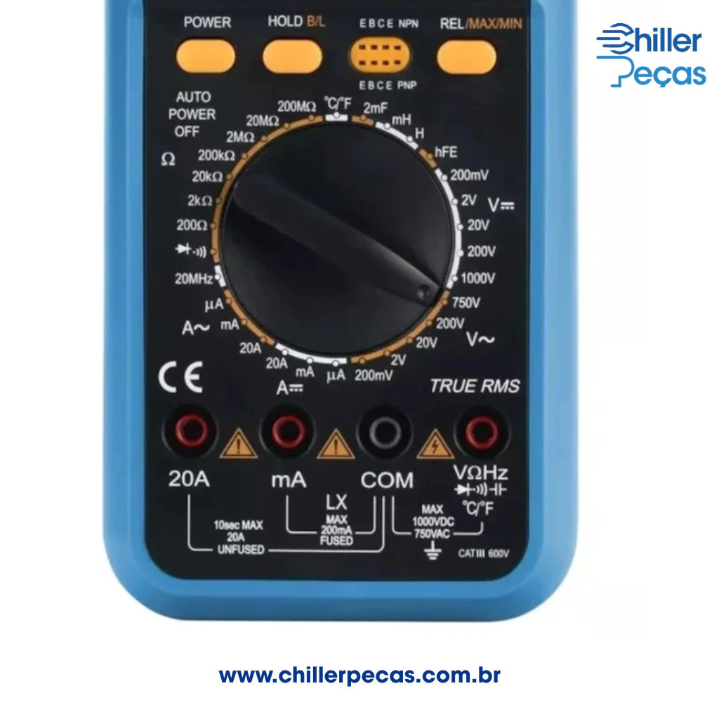 - Solução Completa para Eletrônica de Potência: A capacidade de medir Capacitância e Frequência permite que o profissional resolva problemas em placas de comando e nos sistemas de partida suave (soft-start) dos compressores sem a necessidade de instrumentos adicionais.
