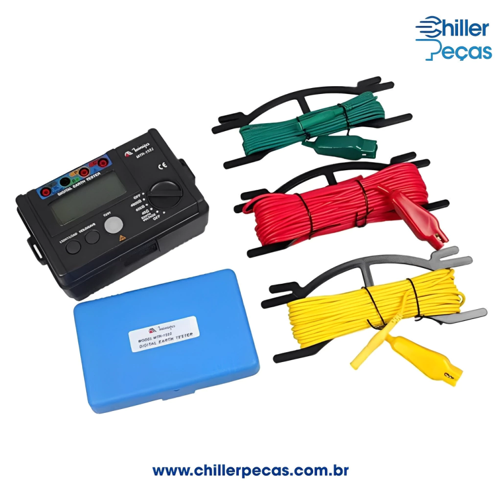 O Terrômetro Digital MINIPA MTR-1522 é um instrumento de medição de precisão projetado para verificar a resistência de aterramento de sistemas elétricos. Para o profissional que trabalha com refrigeração industrial e HVAC, esta ferramenta é fundamental para garantir a segurança operacional e a conformidade das instalações, conforme exigido pelas normas técnicas (como a NBR 5410 e NR 10). Um sistema de aterramento eficiente é vital para proteger equipamentos caros e sensíveis, como placas de controle de chillers, inversores de frequência (VFDs) e compressores, contra surtos e descargas atmosféricas. O MTR-1522 realiza medições precisas com o método de 3 Cabos de teste, sendo ideal para emissão de laudos técnicos de aterramento.