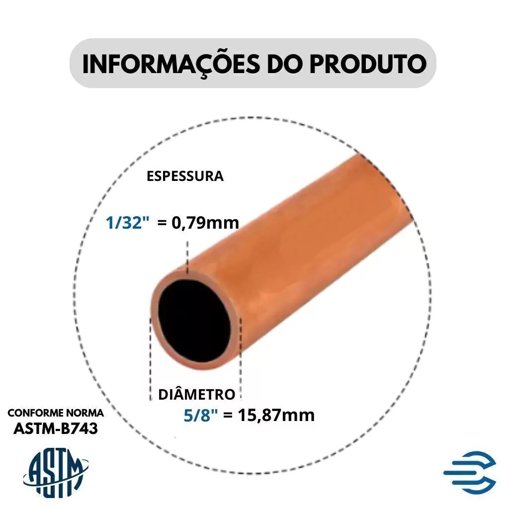 O tubo é compatível com R-22, R-410A, R-134a e demais gases utilizados em sistemas HVAC.