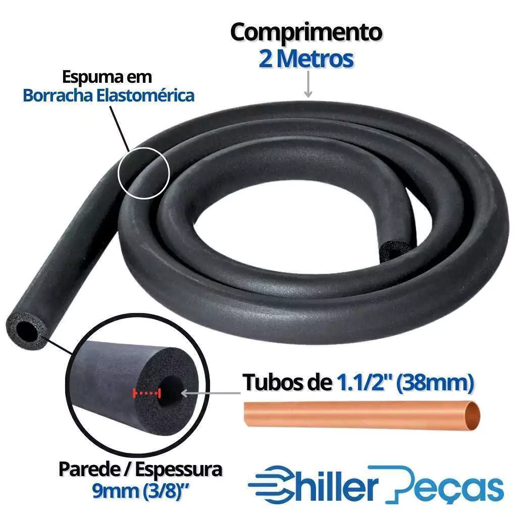 Tubo Isolante Esponjoso Elastomérico Preto 1.1/2" (38mm) Parede 9mm Barra 2 Metros