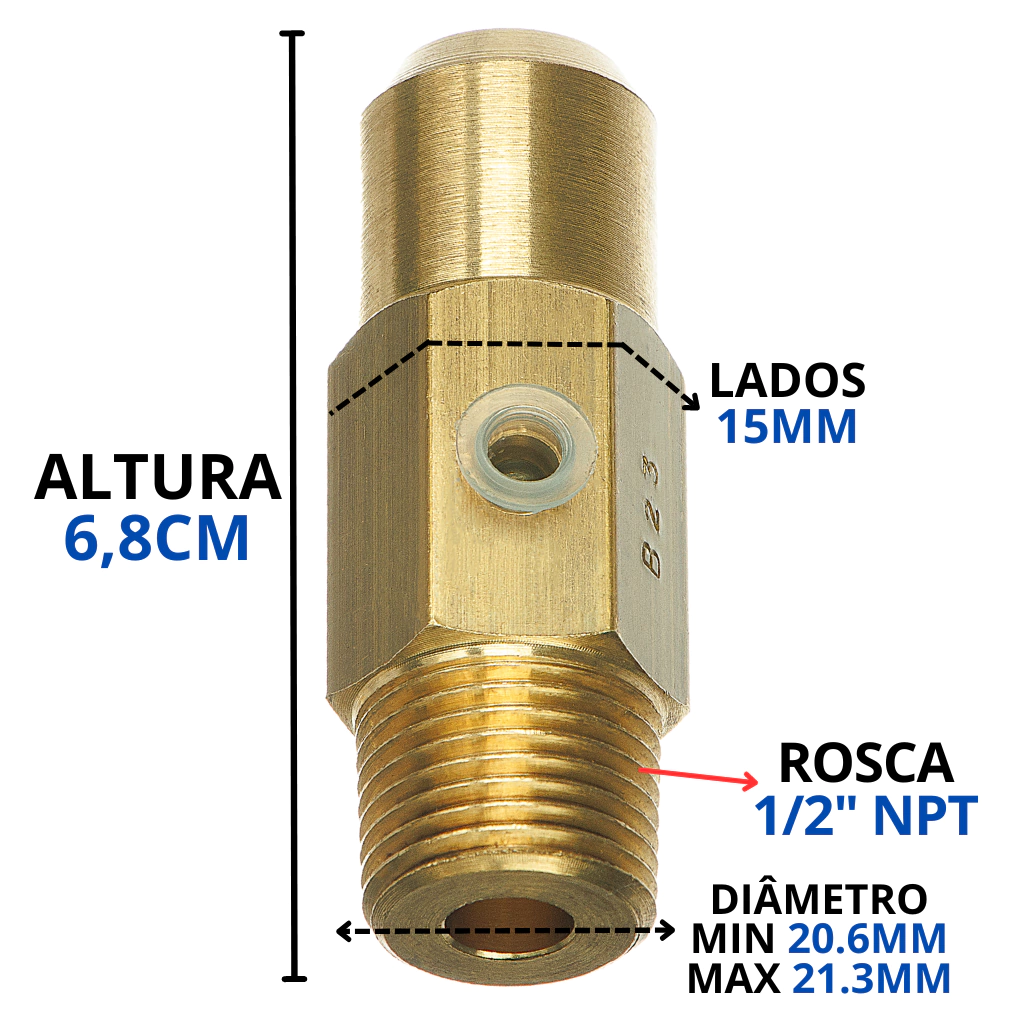 Válvula De Segurança Sextavada 21 KG 1/2" NPT RETA