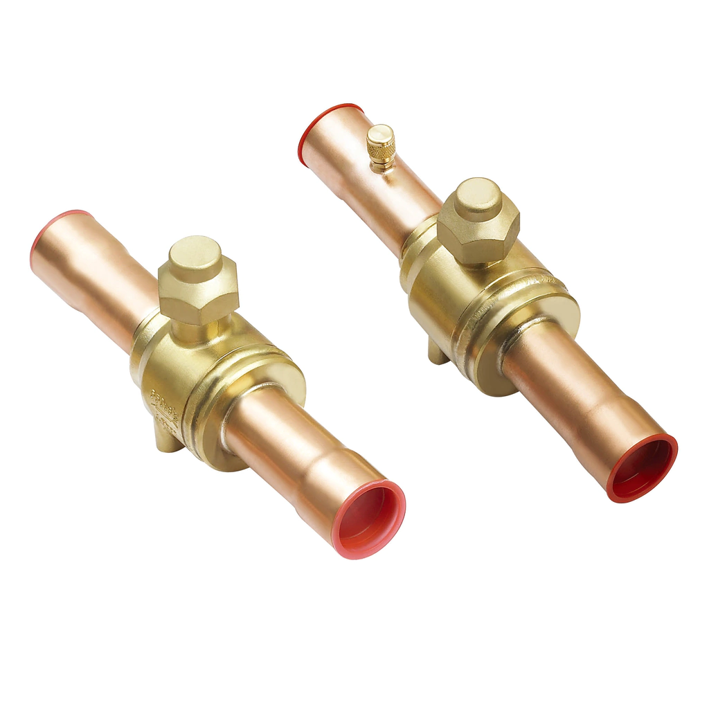 As válvulas esféricas de fechamento tipo GBC da Danfoss são operadas manualmente e adequadas para fluxo bidirecional. As válvulas GBC são utilizadas em linhas de líquido, sucção e gás quente, em sistemas de refrigeração e ar condicionado. Podem ser fornecidas com ou sem porta de acesso externa para manutenção. As válvulas possuem uma tampa de vedação em peça única, podendo ser presa ao corpo, para prevenir a remoção acidental da tampa ou adulteração durante os intervalos entre manutenções.