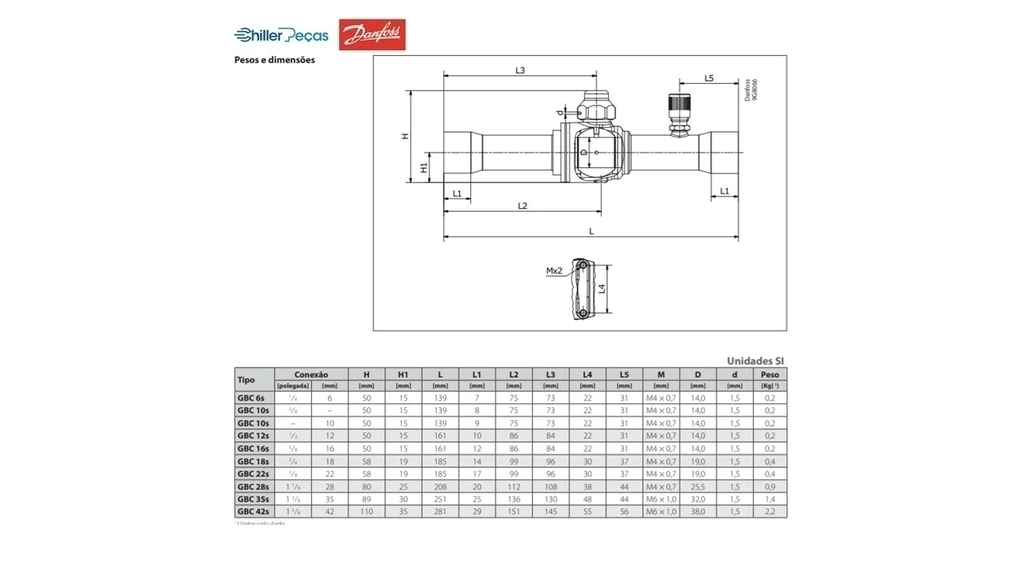 As válvulas esféricas de fechamento tipo GBC da Danfoss são operadas manualmente e adequadas para fluxo bidirecional. As válvulas GBC são utilizadas em linhas de líquido, sucção e gás quente, em sistemas de refrigeração e ar condicionado. Podem ser fornecidas com ou sem porta de acesso externa para manutenção. As válvulas possuem uma tampa de vedação em peça única, podendo ser presa ao corpo, para prevenir a remoção acidental da tampa ou adulteração durante os intervalos entre manutenções.